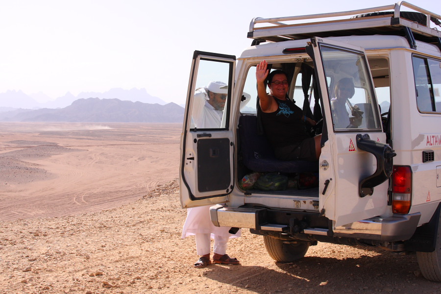 Ine zit nog lekker in de jeep (Hurghada)